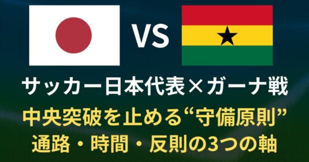 こうした背景を踏まえ、「通路(中央レーン)」「時間(ロスト直後)」「反則(PA前)」という3つの評価軸に着目しながら、ガーナ戦における日本代表の対応策を具体的に整理していきます。