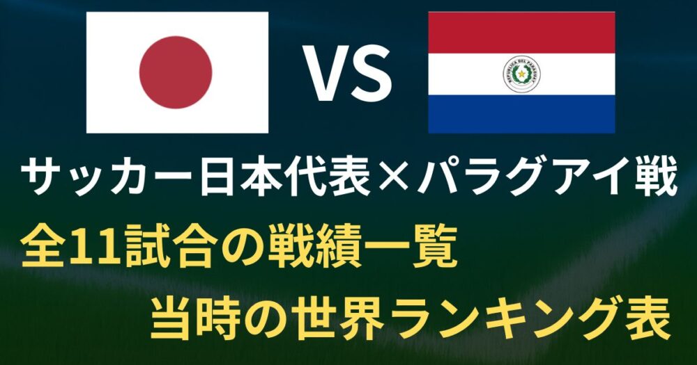 ここでは、日本代表とパラグアイ代表が過去に行った国際Aマッチ11試合を、当時のFIFAランキングとともに一覧で振り返ります。